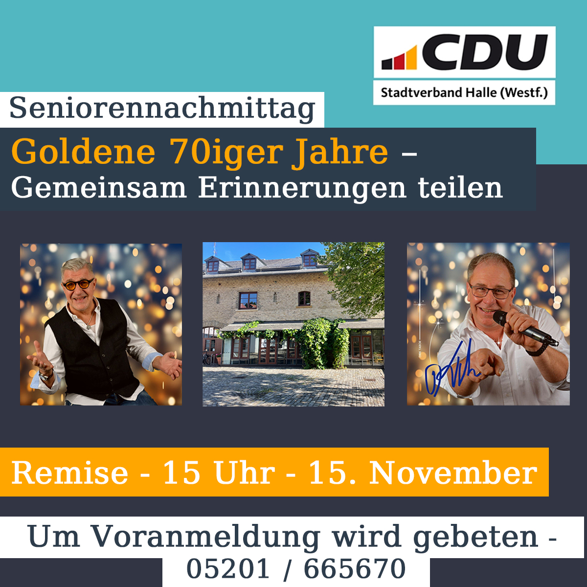 12. November 2025 freuen. Gern können Sie dies per Telefon (Tel. 05201 665670, Fam. Reimers) oder per E-Mail (info@cdu-hallewestfalen.de) tun.
