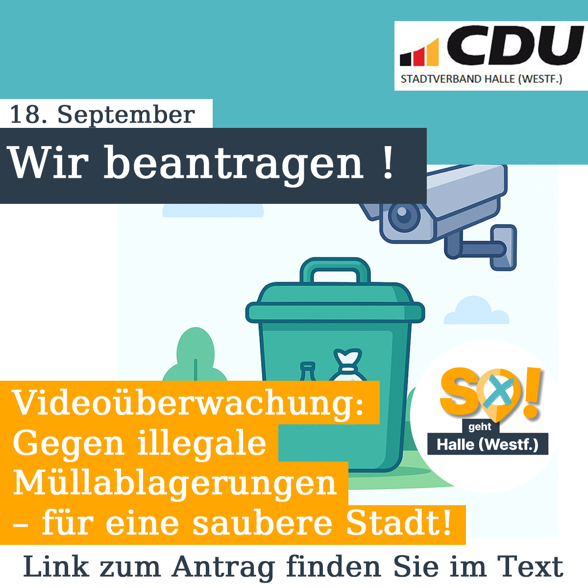 Wir als CDU Halle (Westf.) haben deshalb beantragt, ausgewählte Sammelstellen mit Videoüberwachung auszustatten. 🎥